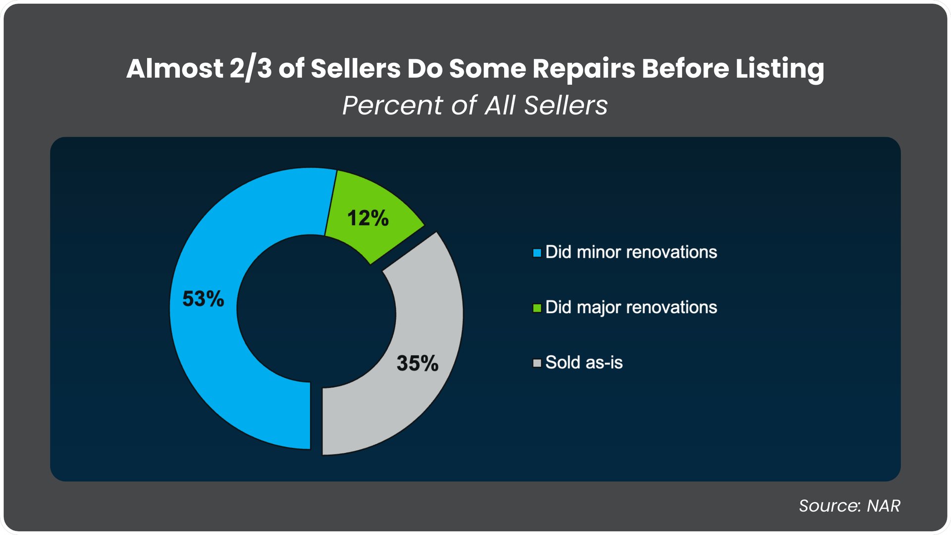 Some sellers still choose as-is — but now it’s less common. Roughly two-thirds of sellers make some updates before listing; only about one-third opt for pure as-is sales.